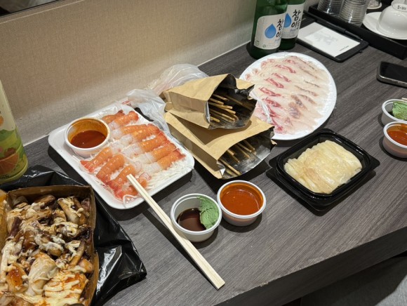 먹을 음식 사서 숙소로!